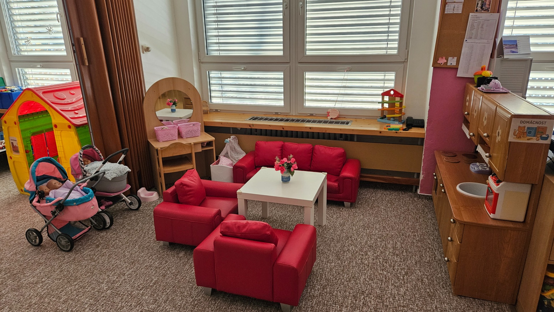 děti si mohou pohrát v herních koutcích a vyzkoušet si prostředí MŠ